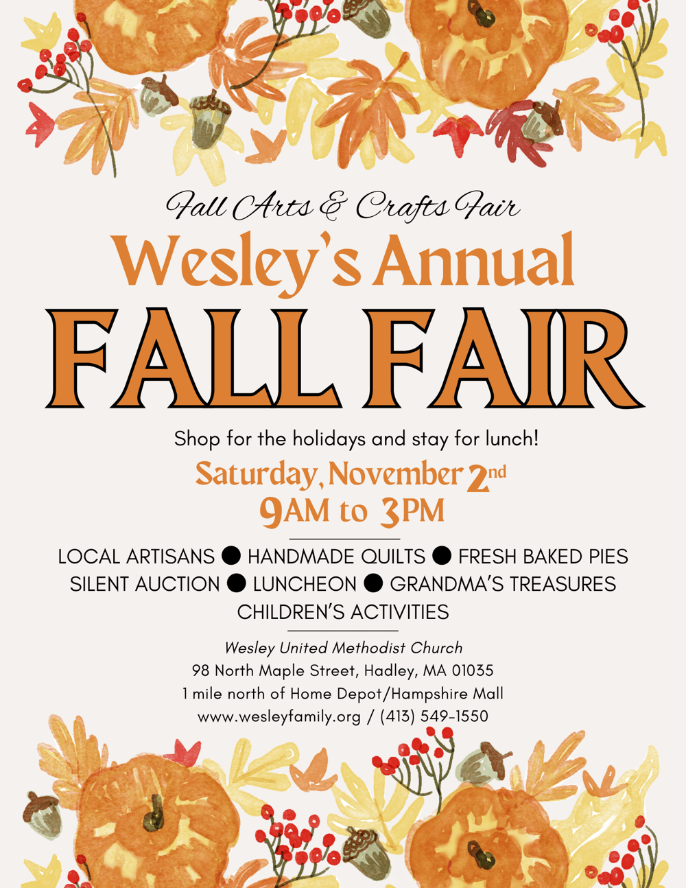 Come to Wesley’s Fall Craft Fair on November 2nd!